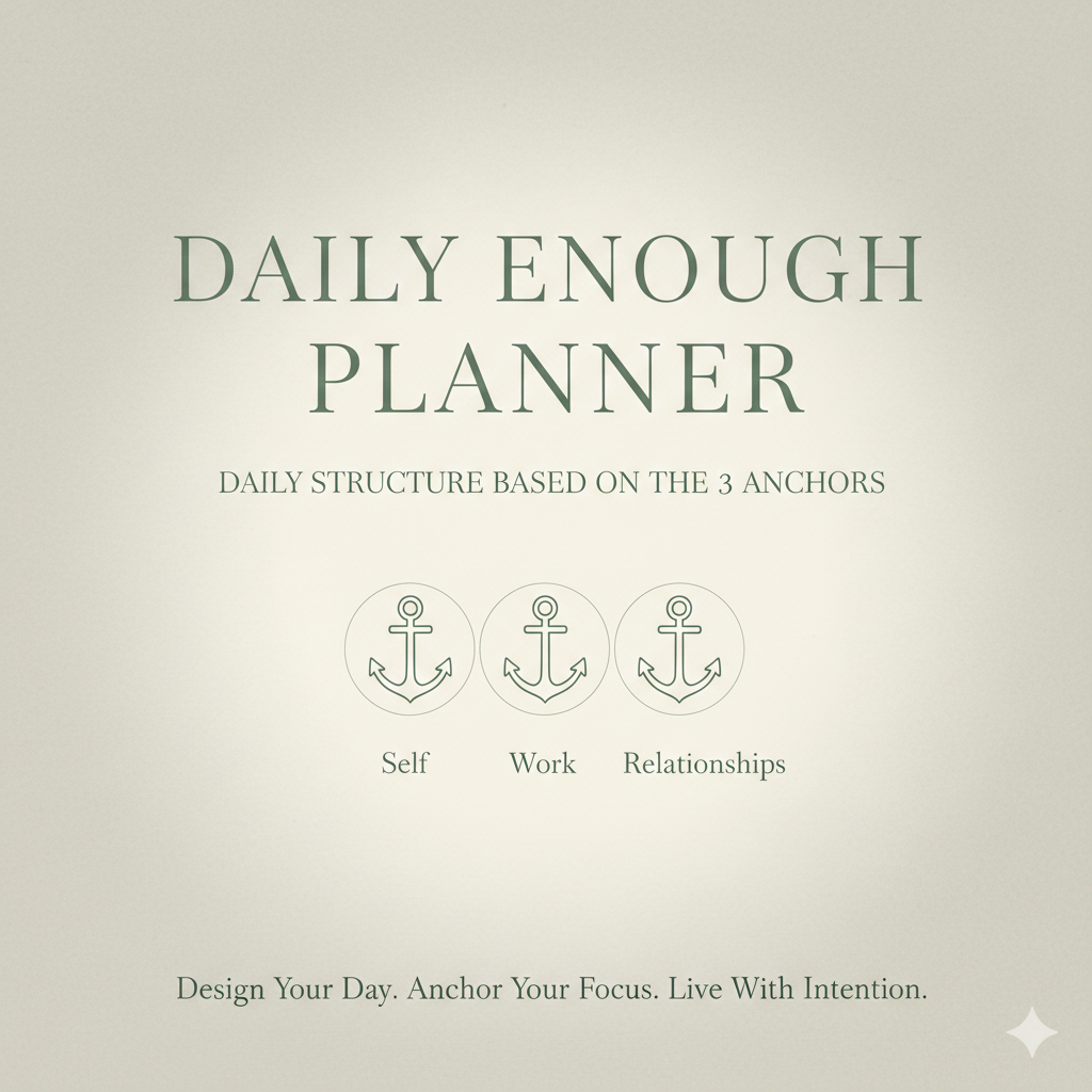 Enough Today is a practical daily system created for overwhelmed women struggling with guilt, burnout, and the constant pressure to do more.